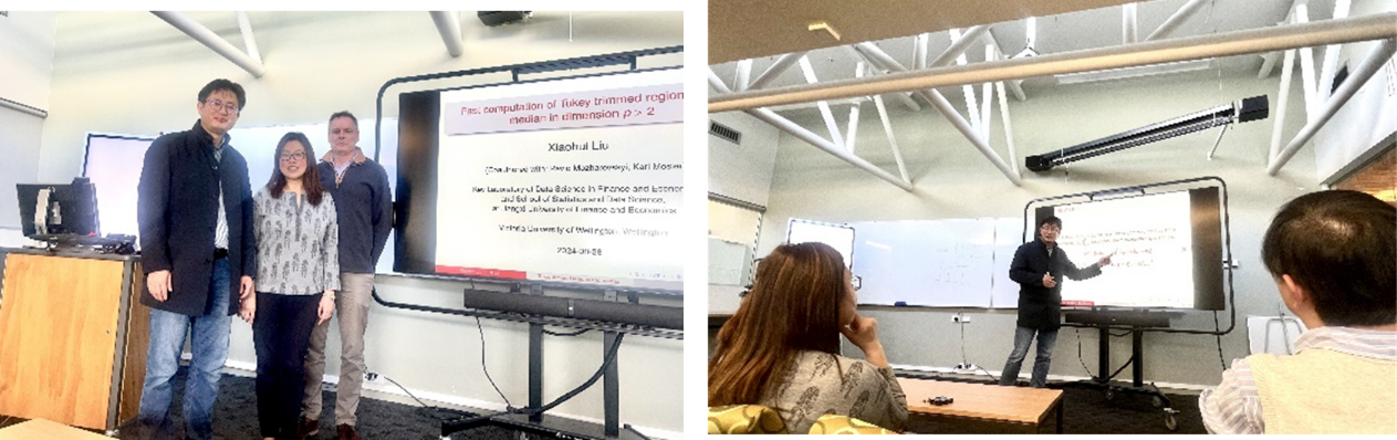 在访问期间,刘小惠教授与数学与统计学院、数据科学与人工智能中心的双聘人员Ivy Liu教授就有序分类数据(ordinal data)在复杂数据环境下的统计推断进行了探讨,共同确定了可供进一步研究的课题内容。Ivy Liu教授长期耕耘于ordinal data的统计数据分析领域,是该领域的国际权威学者。Ivy Liu教授及其团队将ordinal data等统计方法应用于改善新西兰三文鱼等海鲜水产的养殖水平方面,取得了显著成果与积极进展。