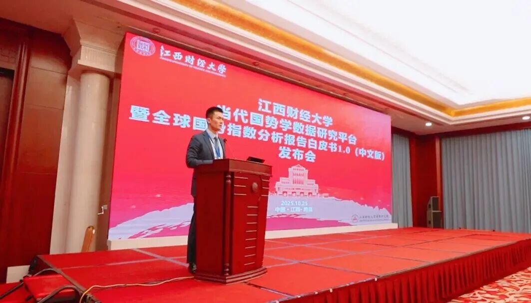 10月25日,江西财经大学当代国势学数据研究平台及《全球国势指数分析报告白皮书1.0(中文版)》正式发布。此次会议由江西财经大学统计与数据科学学院、国势研究院主办,江西省教育厅、江西省工信厅、江西省统计局等部门领导,全国70余位高校专家学者,江西财经大学党委书记刘耀彬、副校长方玉明、相关职能部门主要负责人出席会议,多家媒体单位赴现场报道。发布会由江西财经大学副校长袁红林主持。