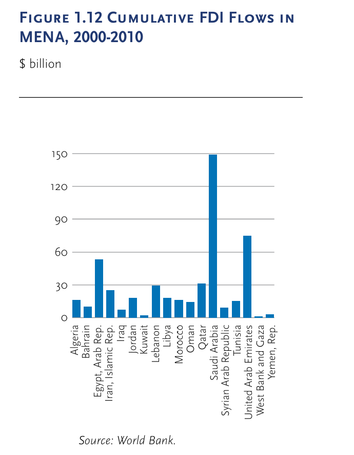 图四:2000-2012年中东和北非外国直接投资累计流入