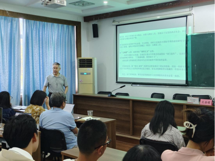 10月7日下午,江西财经大学国势研究院于蛟桥园校区北区综合楼414顺利举办“当代国势学大讲堂”(第一期)主题讲座。南京大学政府管理学院肖唐镖教授受邀莅临我院讲学,为全院师生作“社会科学研究中的概念建构与量表开发”为主题的学术讲座。平卫英教授、罗良清教授、郭露教授与全院60余名师生共同参加了本次活动,讲座由国势研究院副院长冯凌秉主持。