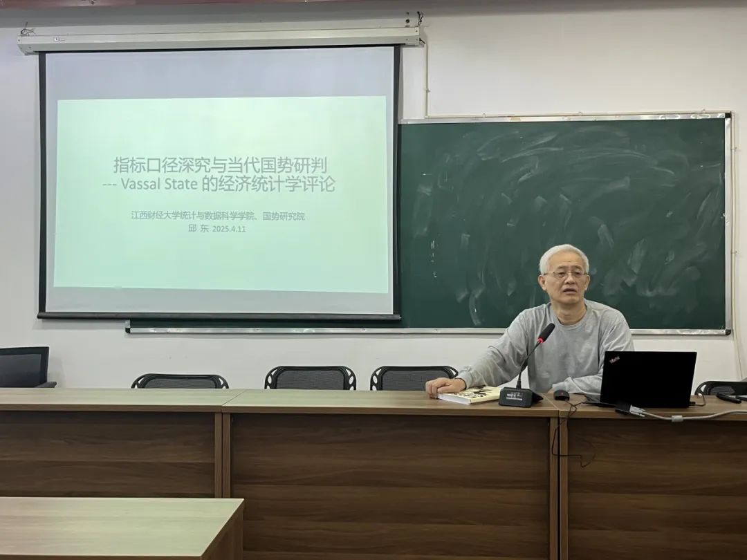 4月24日,我校讲席教授、统计与数据科学学院名誉院长、国势研究院名誉院长邱东教授,在蛟桥园北区综合楼414会议室举办了一场主题为“指标口径深究与当代国势研判”的学术讲座。本次讲座由国势研究院副院长冯凌秉主持,统计与数据科学学院师生40余人参与。