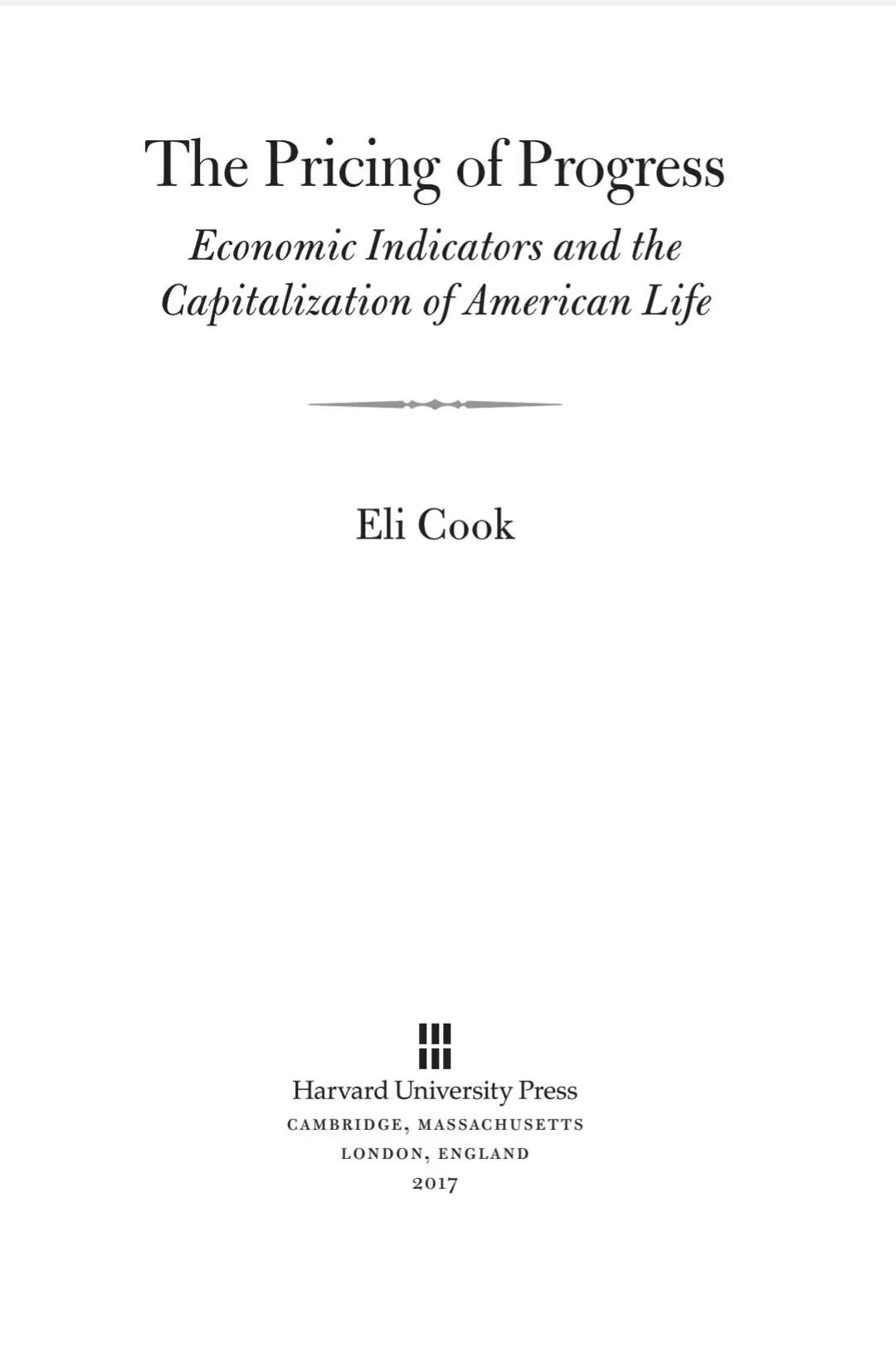 Cook, Eli. 2017. The Pricing of Progress: Economic Indicators and the Capitalization of American Life. Cambridge, Massachusetts: Harvard University Press.