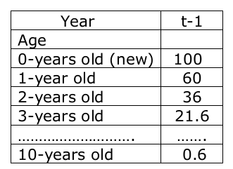 Table 3(不同年份和不同年龄资产的固定价格价值)