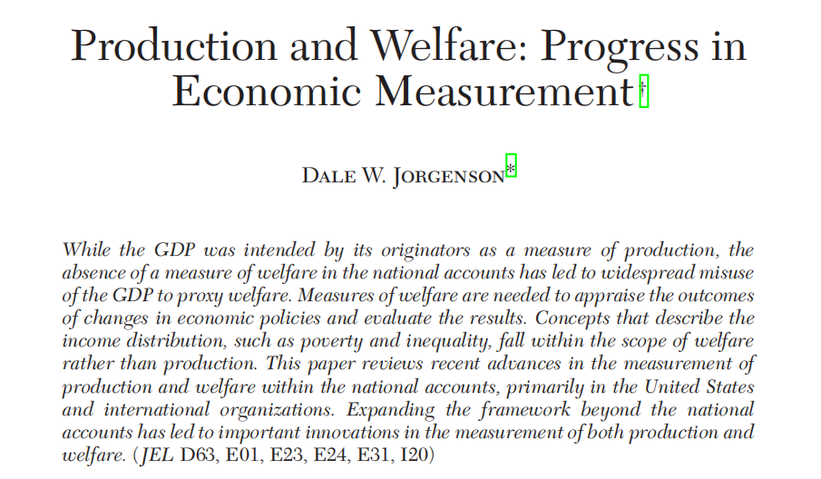 Jorgenson, Dale W. 2018. Production and Welfare: Progress in Economic Measurement. Journal of Economic Literature 56(3): 867–919.